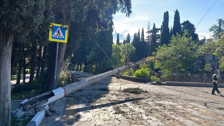 Ночью на курортную столицу Крыма обрушилась стихия, в результате ураганный ветер повалил столб на улице Ломоносова в Ялте. Об этом сообщила глава администрации города Янина Павленко.