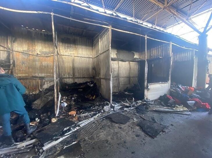 Огонь полностью уничтожил товары, у части торговцев, реализовывавших здесь свою продукцию. Причину пожара устанавливают специалисты.