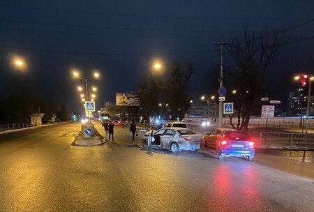 Ночью в Симферополе перед светофором столкнулись иномарки (ФОТО)