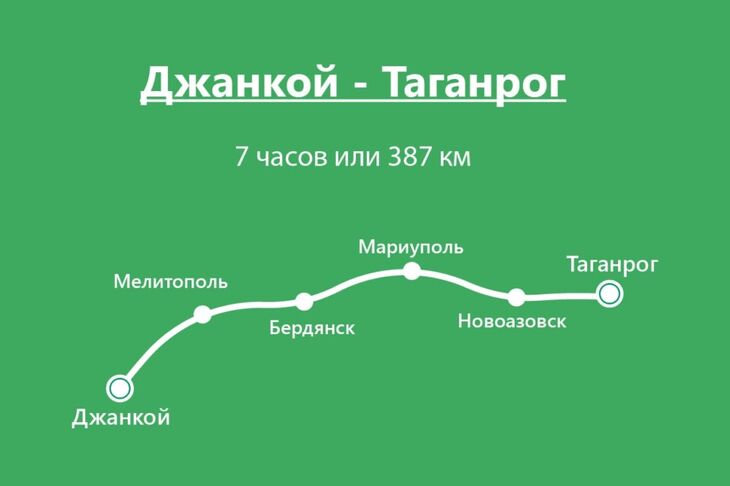 «Путь в 387 километров, проходящий через Мелитополь, Бердянск, Мариуполь и завершающийся в Таганроге Ростовской области займёт у водителей около 7 часов», — уточнили в администрации Запорожской области.