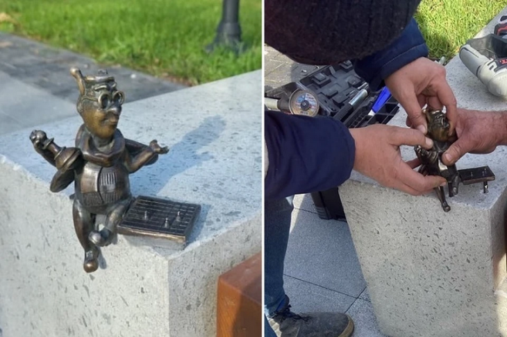 В Екатерининский сквер Симферополя вернулся поврежденный вандалами Шахматист - одна из маленьких бронзовых пчелок, фигурки которых установле...