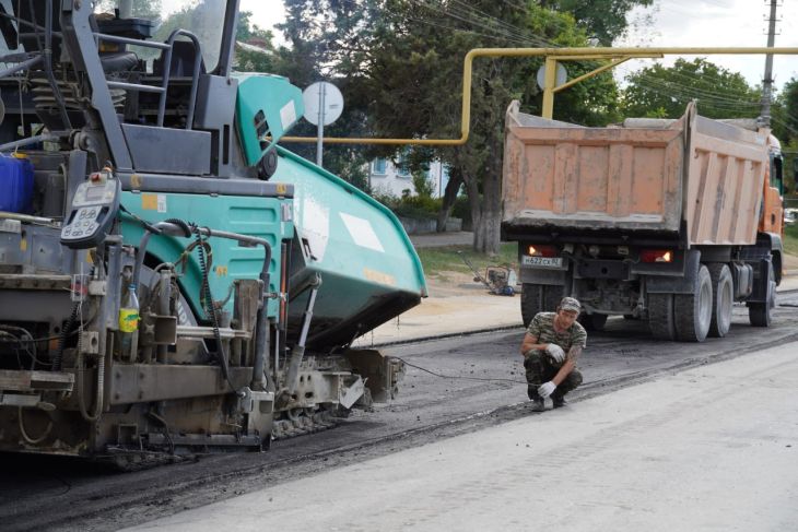 Глава администрации Керчи Олег Каторгин проинспектировал асфальтные работы на ул. Чкалова. Подрядная организация завершает укладку верх...