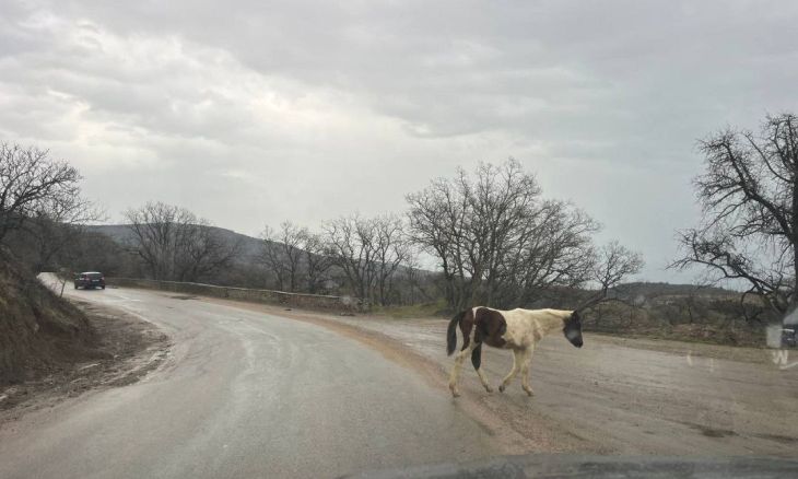 Год Лошади по восточному календарю еще не наступил, а лошадки уже вольно чувствуют себя на автомобильной дороге. Информацией об эт...