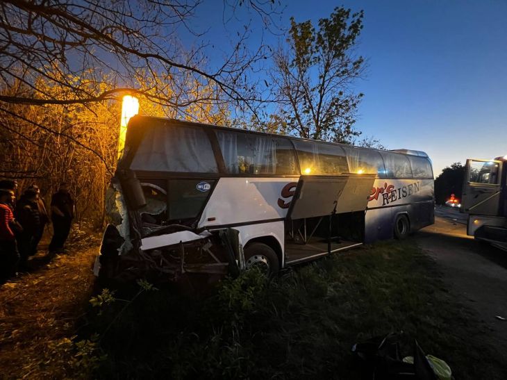 Сегодня рано утром автобус, двигавшийся по маршруту «Луганск-Севастополь», в районе села Знаменка Красногвардейского района выехал на полосу встречного движения, где столкнулся с фургоном.