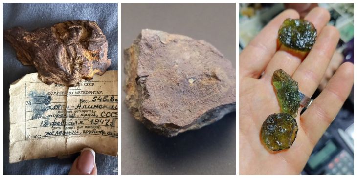 Открывает подборку Сихотэ-Алинский метеорит 1947 года — один из самых известных железных метеоритов, упавших на территорию СССР. Его падение на Дальнем Востоке сопровождалось яркой вспышкой и множеством осколков, которые разлетелись на большой площади. С тех пор эти фрагменты стали объектом внимания ученых и коллекционеров. Представленный экземпляр относится именно к этому падению и сохраняет характерную текстуру железного метеорита с неровной поверхностью, сформированной при прохождении через атмосферу. При желании его можно приобрести, цена — 70 000 ₽.