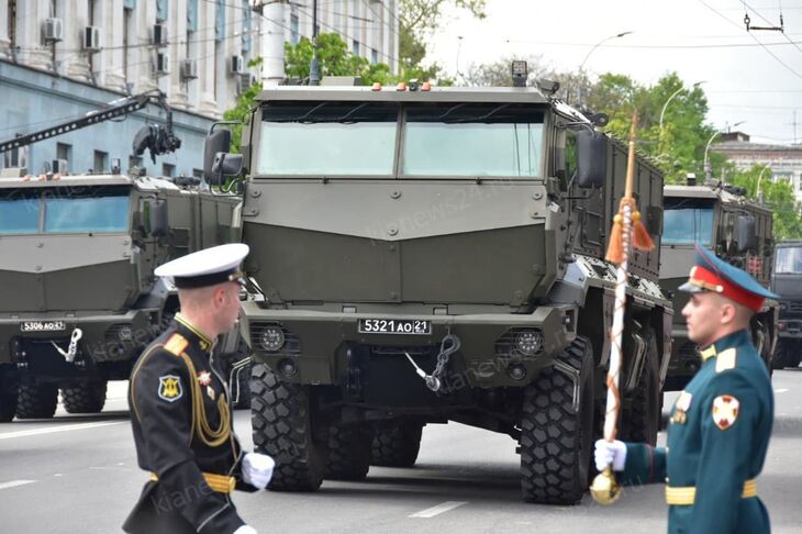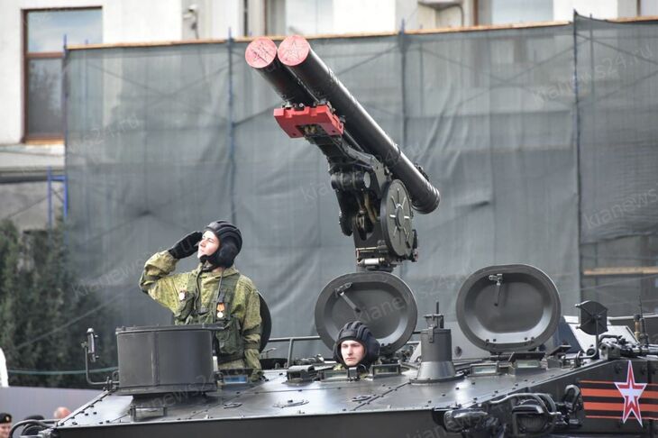 В Симферополе стартовал Парад Победы. В нем принимают участие больше 70 единиц военной и специальной техники армейского корпуса Черноморского флота. Среди них – бронетранспортеры БТР-82а, бронеавтомобили «Рысь» и «Тайфун», ЗРК «Панцирь-С» и «Оса».