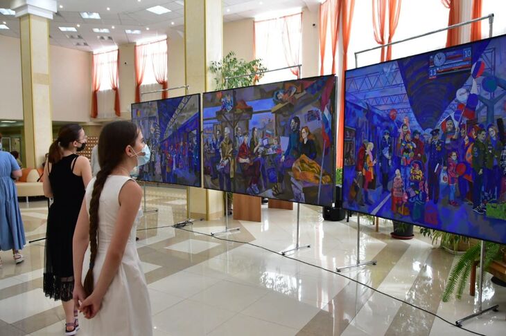 «Она сделала около ста рисунков, часть из них тоже представлена на выставке. И потом её муж Кирилл Соснин в течение года на основе фото и графических материалов создал композицию триптиха «Первый поезд Санкт-Петербург — Севастополь» («Отбытие», «В пути», «Прибытие», — рассказал корреспонденту КИА Александр Старых.