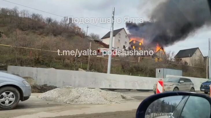 Огонь виден с трассы Ялта- Симферополь. Скорее всего пожар перешёл с одного здания на другое из-за их близкого расположения и ветра. Крыша у двух домов сгорела полностью.