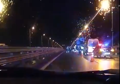 Ночью на Крымском мосту произошло ДТП с участием «девятки» и автокрана. Об этом сообщают очевидцы в соцсетях.