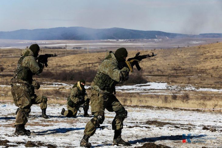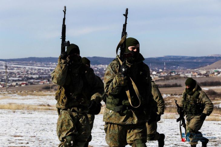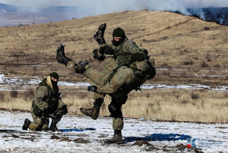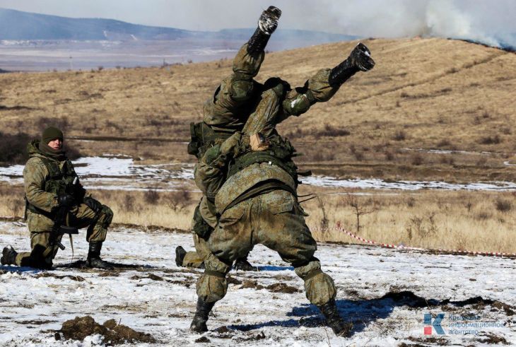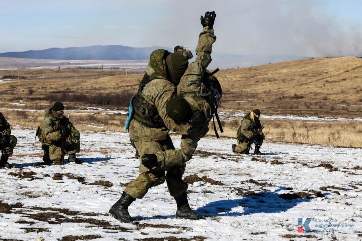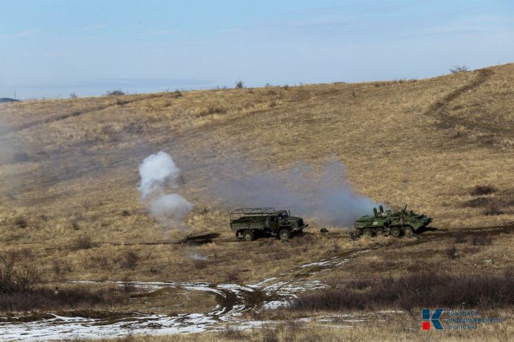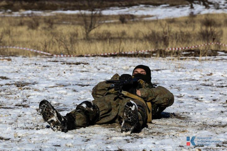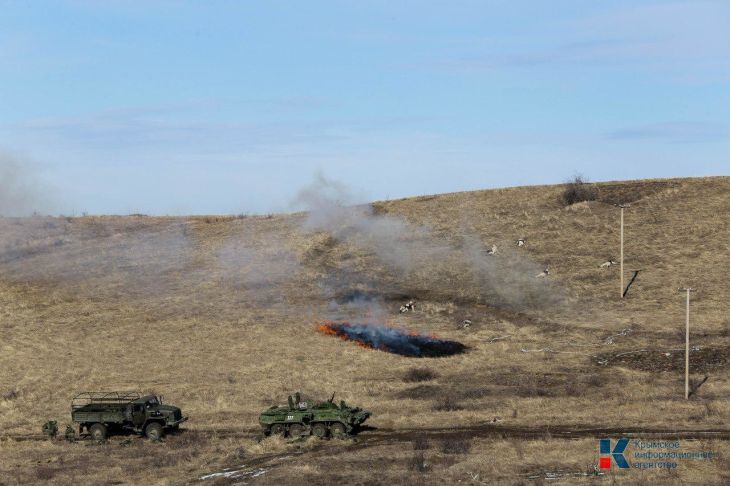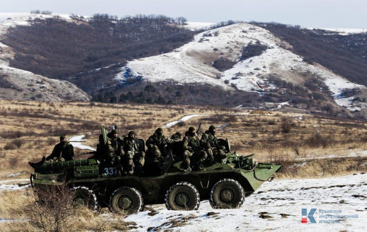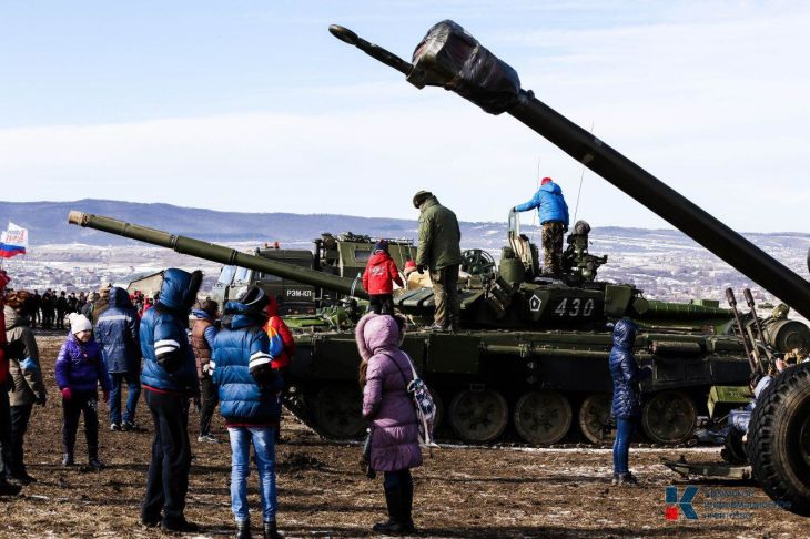 Сегодня, 18 февраля военный полигон под Симферополем превратился в афганское ущелье с душманами, рукопашным боем и танковым сражением. Как сообщает корреспондент КИА, на полигоне была выставлена военная техника 126-й отдельной бригады береговой обороны ЧФ, которую облюбовали взрослые и дети для фотографий.