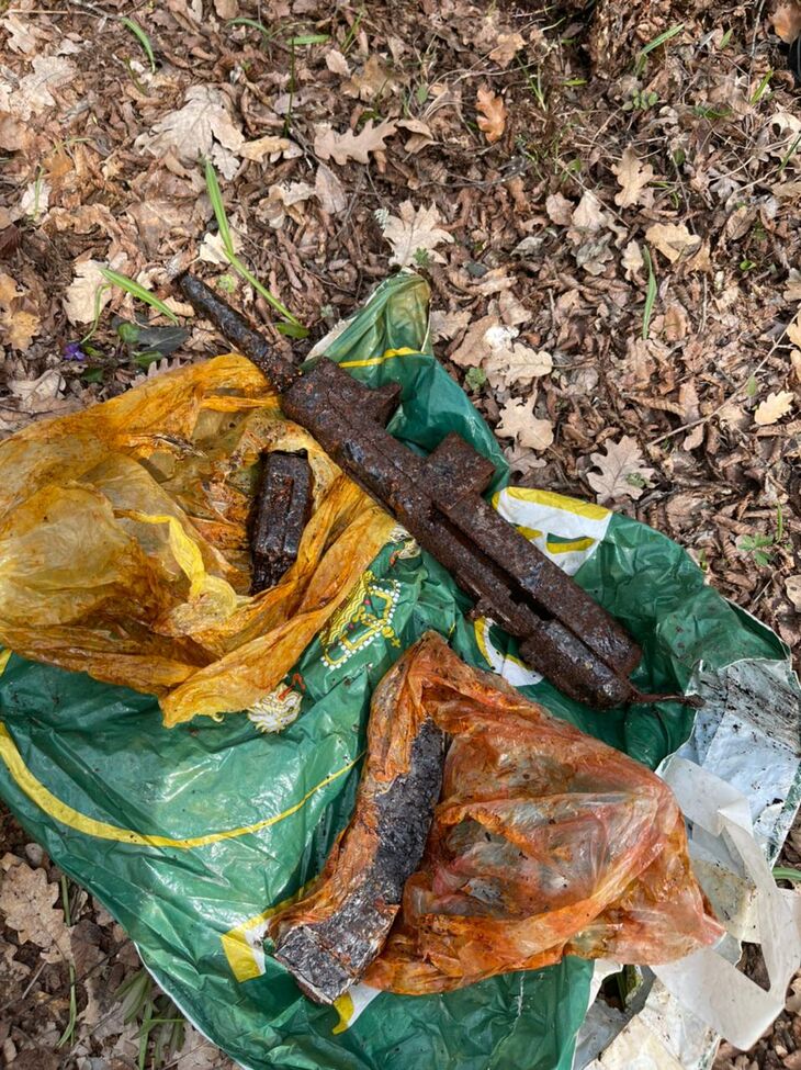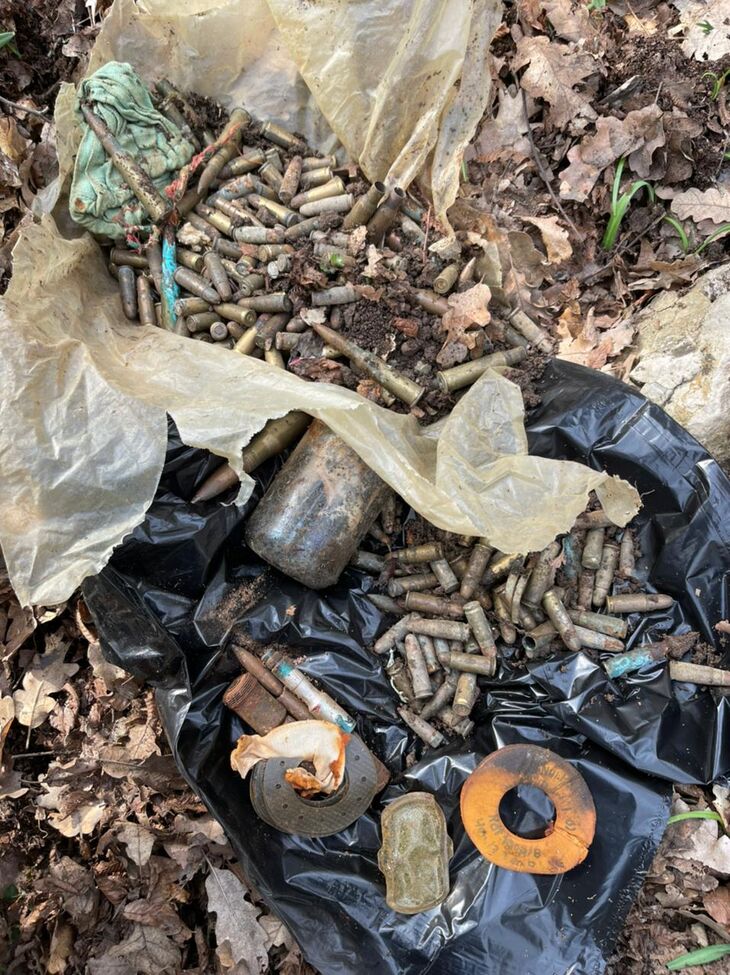 Среди выявленного – части огнестрельного оружия, подвергшегося сильной коррозии, порядка четырехсот патронов различного калибра, осколочная граната Ф-1 и емкость, содержащая порох.