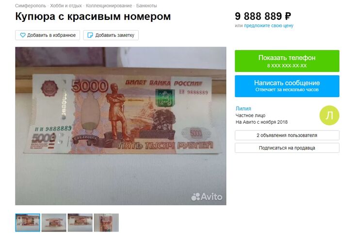 «Красивый номер, для коллекции. Купюра с банкомата», — написала пользователь сайта под именем Лилия.
