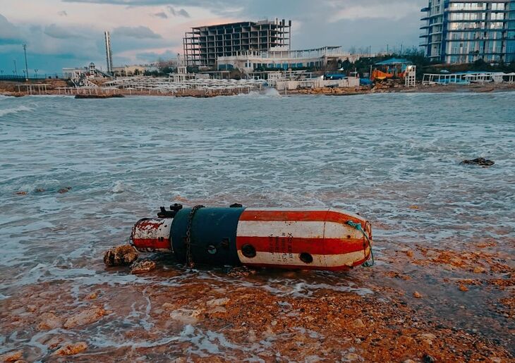 На одном из пляжей Севастополя после шторма нашли странную находку — снаряд, похожий на морскую мину. Фото: пресс-служба Росгвардии Жи...