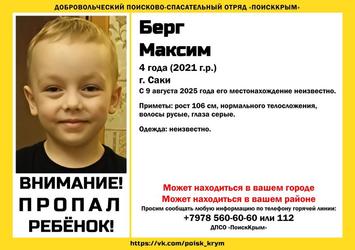 В Саках пятые сутки ищут пропавшего мужчину с маленьким ребенком. Как сообщает добровольческий поисково-спасательный отряд «ПоискКрым» Стани...