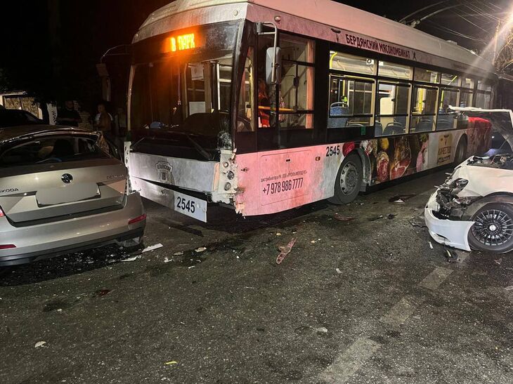 Вчера вечером в районе улицы Трубаченко в Симферополе произошла авария: столкнулось три иномарки и троллейбус. Об этом сообщили в Госавтоинс...