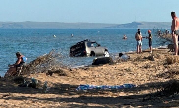 В Керчи на городском пляже отдыхающие устроили экстремальную поездку по песку, которая закончилась неудачным «водным дрифтом». Фото: соцсети...