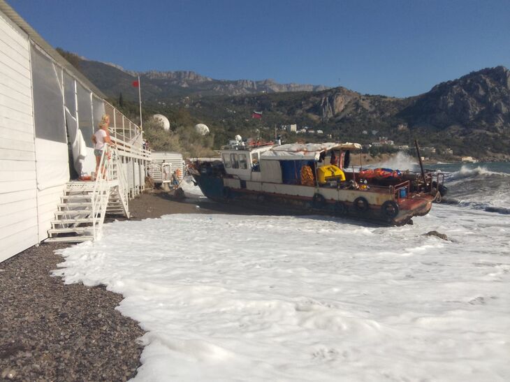 В посёлке Кацивели (Большая Ялта) из-за сильного шторма катер сорвало с якоря и выбросило на пляж, сообщила глава администрации Ялты...