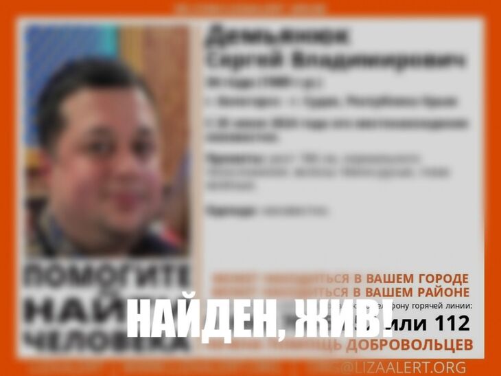 Сергей Демьянюк пропал в Крыму ещё в середине июня, на этой неделе поиски мужчины завершились. Об этом сообщил поисково-спасательный отряд «Лиза Алерт» Крым.