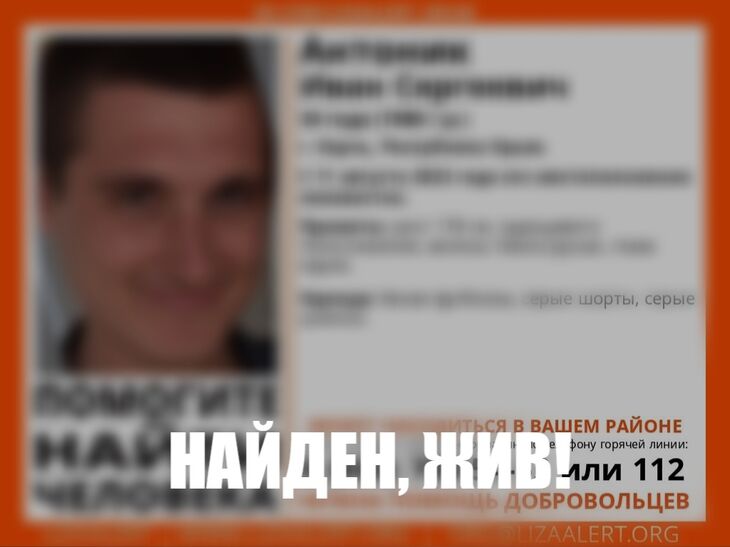 В Керчи 34-летний житель без вести пропал две недели назад. Его нашли живым и невредимым. Об этом сообщили в поисковом отряде «ЛизаАлерт» Крым.
