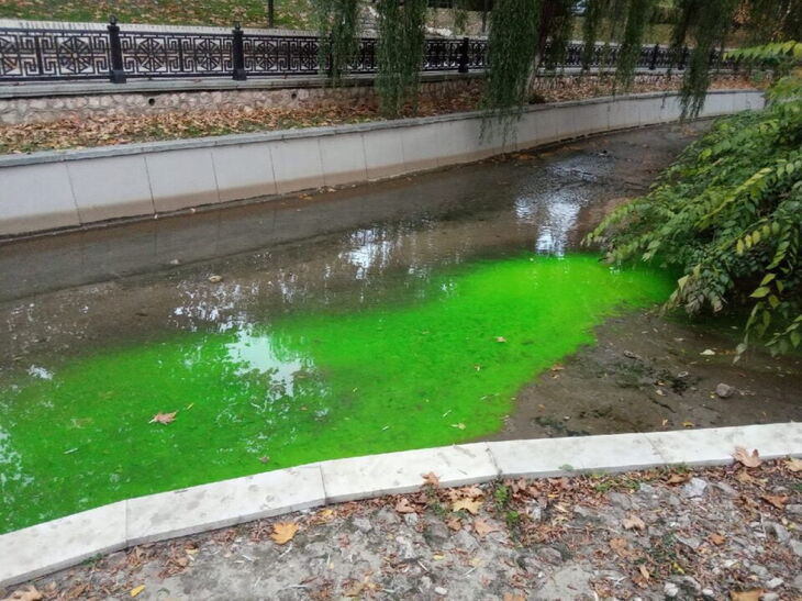 Жители Симферополя обеспокоены новой цветовой гаммой городской речки. Фото Салгира в соцсетях уже вызвало бурное обсуждение.