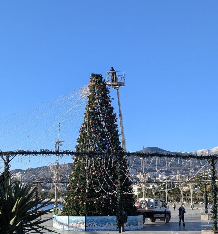 В Ялте на набережной несколько бригад ремонтируют пострадавшие от вчерашнего штормового ветра елочки.