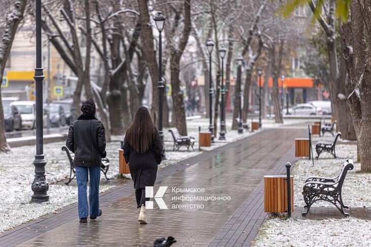 По данным Крымского управления по гидрометеорологии и мониторингу окружающей среды сегодня в Крыму ожидаются: мокрый снег, снег, местами сильные осадки, отложение мокрого снега, туман, гололед, на дорогах гололедица.
