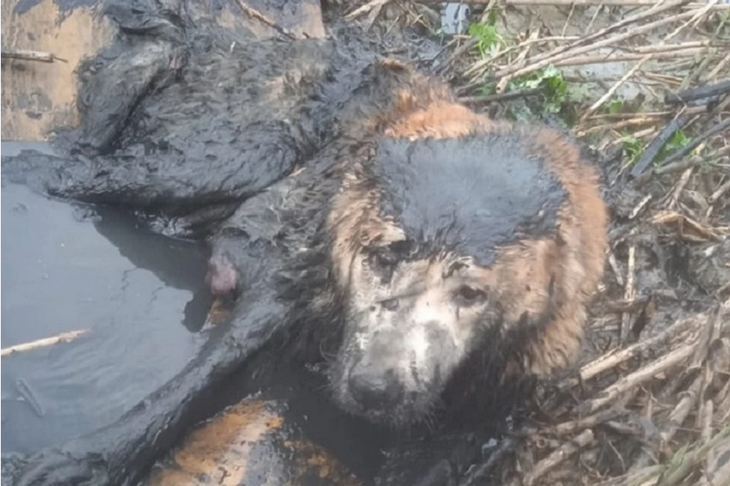 В Керчи похожая на алабая бедолага лежала в болотной жиже и уже не пыталась выбраться, когда на помощь пришли подростки.