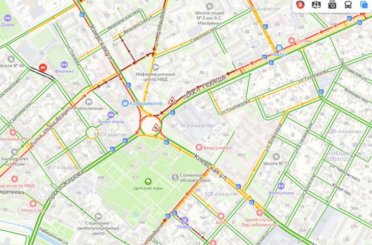По данным сервиса «Яндекс. Карты», в крымской столице сейчас 8-бальные пробки.