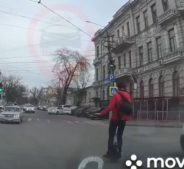 — Велосипед есть в ПДД, а электросамокатов и этой штуки нет. Даже на велосипеде можно ездить только в крайнем правом ряду. Он должен сойти на тротуар и как пешеход перейти по переходу.