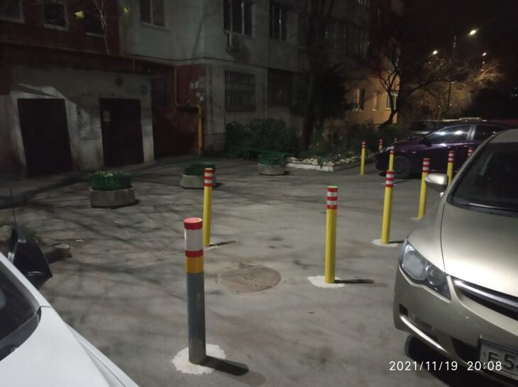 Житель Симферополя устал терпеть автохамов, которые подпирают двери многоквартирного дома. Мужчина установил на площадке перед подъездом ограничительные столбики для автомобилей.
