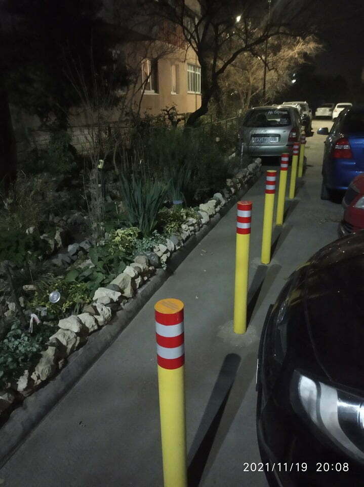 «Симферопольские дворы в многоэтажной жилой застройке. Как бороться с парковкой авто прямо у дверей подъезда. Да, это решение проблемы, для того чтобы обезопасить именно тротуары от парковки на них автомобилей», — написал житель Симферополя.