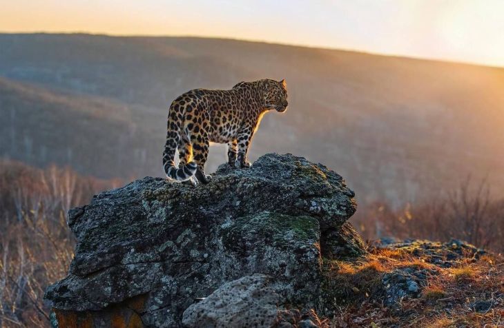 Леопарды также способны ежедневно преодолевать большие расстояния. В среднем их ежедневный маршрут составляет 15 км в день. Однако в 2023 году камера в национальном парке «Земля леопарда» зафиксировала рекордный дневной переход леопарда Герды – 56 км. При этом хищник может развивать скорость до 60 км/ч и прыгать на 5,7 м в длину.