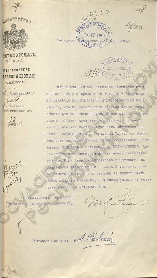 4. О том, что ТУАК довела до сведения Императорской Археологической Комиссии, что на поверхности Неаполя близь Симферополя все еще производится ломка камня (1901 г.)