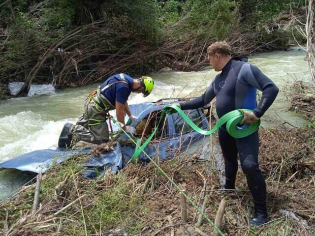 Спасатели достают ещё один автомобиль из реки Коккозка