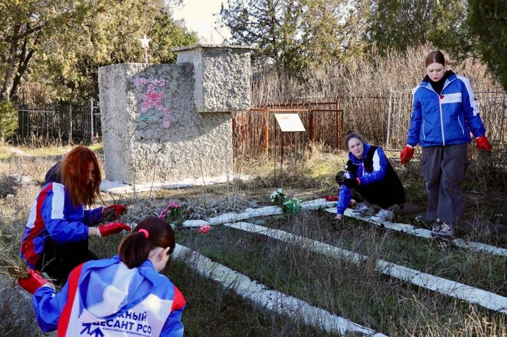 Студенты в Крыму убирают памятники и братские захоронения советских воинов