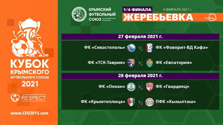 «ТСК-Таврия» — ФК «Евпатория», «Крымтеплица» — «Кызылташ» и другие пары четвертьфинала Кубка КФС-2021