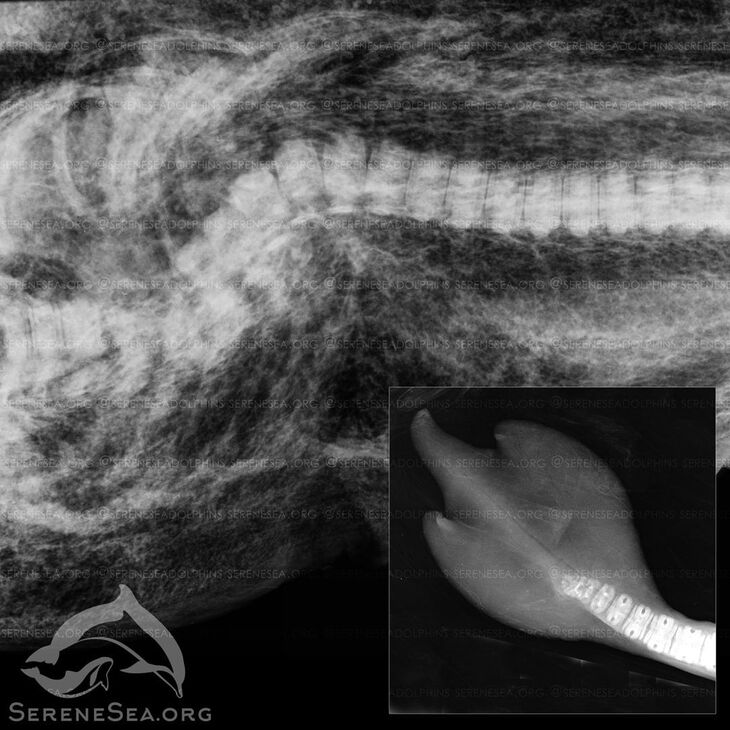 «Эта особенность развития ранее не встречалась в научной литературе по китообразным, но, как мы и предполагали, в Черном море такой дельфин не один. На рентгенографии, помимо особенности строения лопастей, было выявлено сращение хвостовых позвонков. Особенности этих двух дельфинов имеют схожую природу, – не исключено, что они являются родственниками, а врождённая аномалия может быть результатом генной мутации», — отметили в центре «Безмятежное море».
