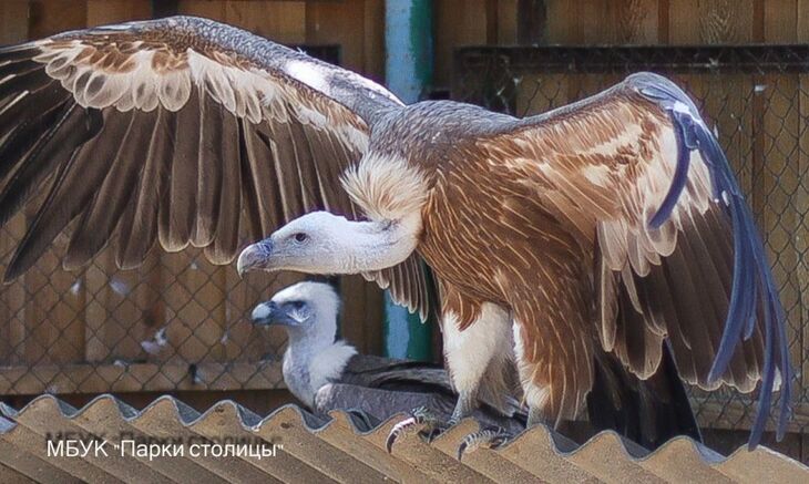 Сипы белоголовые появились в зооуголке в начале 2000-х. Потомством им удалось обзавестись в 2020-ом году.