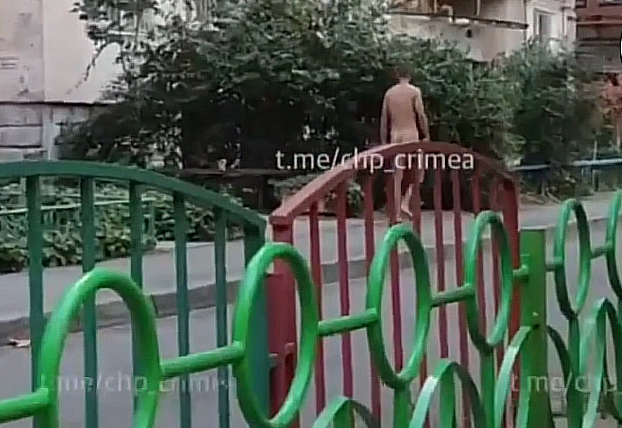 Жители Симферополя в соцсетях поделились видео, на котором видно, как по улице, недалеко от одной из школ, идёт голый мужчина.