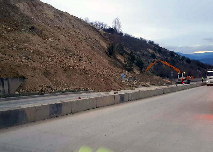 Сейчас здесь ведут работы по устранению сошедшей на дорожное покрытие земли.