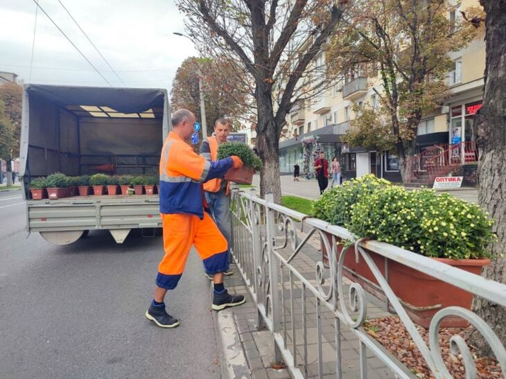 На базе МБУ «Горзеленхоз» было подготовлено и высажено в кашпо около 3000 кустов хризантем. Силами МБУ «Город» осуществляется установка этих цветочных композиций.