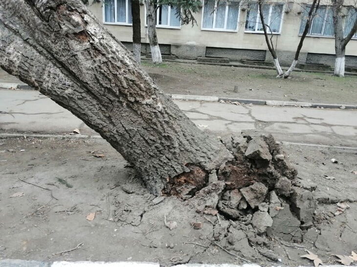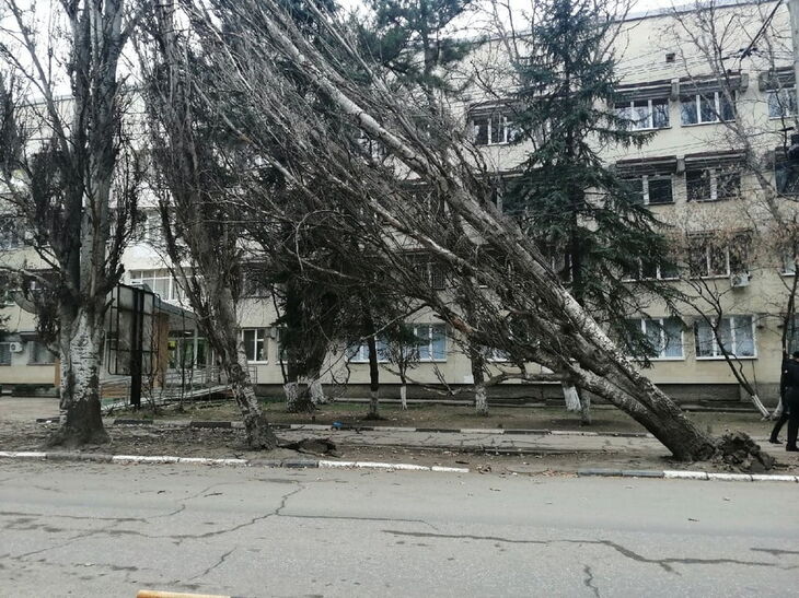 Природная стихия изрядно порезвилась в Симферополе, например в центре, на улице Павленко, в районе Верховного суда РК, вывернула с корнем два пирамидальных тополя, которые росли рядом. Огромные деревья не упали, а повисли на проводах, — пишет КП-Крым.