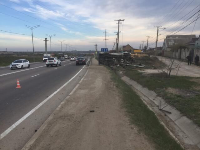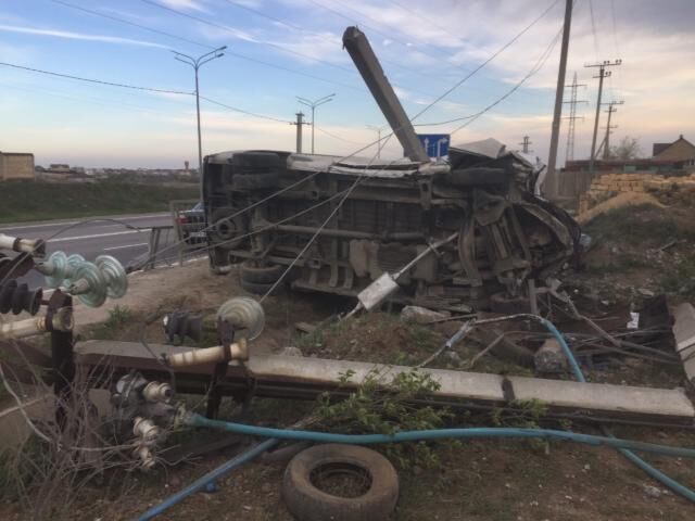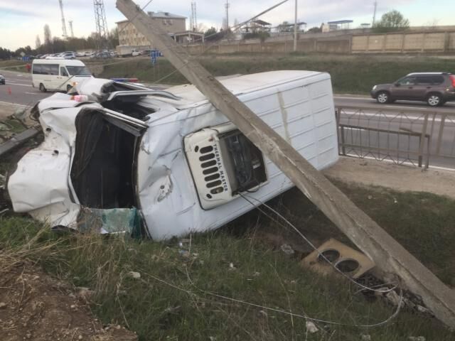 Уснувший водитель спринтера снес электроопоры и перевернулся под Симферополем (ВИДЕО,ФОТО)