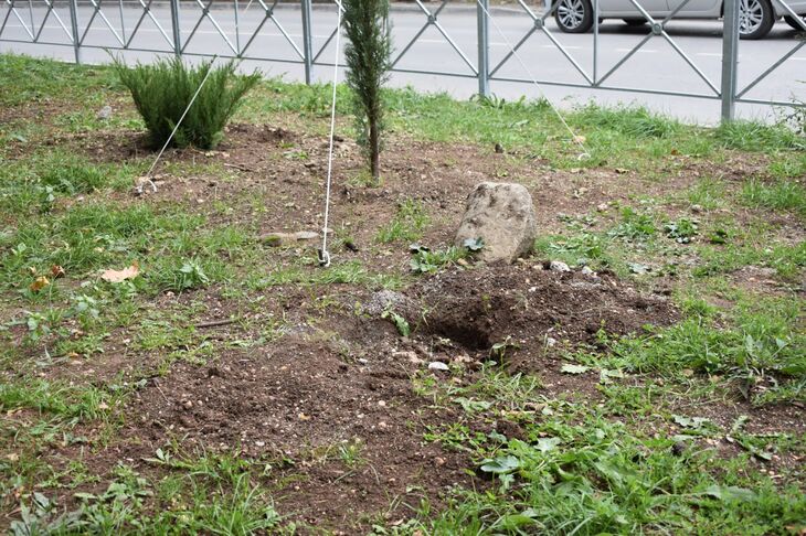 Прошло меньше недели с завершения озеленения, где были высажены кипарисы и можжевельник, но вскоре часть из них не украли.