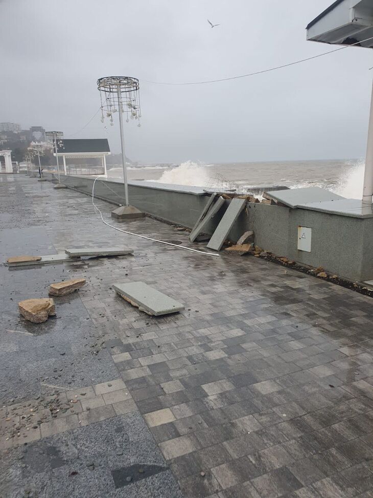 В администрации Алушты обратились к подрядчику строительства набережной, из-за разрушенных штормом плит на парапете.
