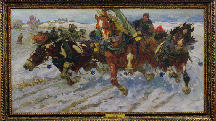 Вниманию гостей в течение месяца будут представлены 15 репродукций живописных и графических работ Николая Самокиша. Среди экспонатов – эскиз к его диплому в Академии художеств «Русская кавалерия возвращается после атаки на неприятеля под Аустерлицем в 1805 году» (1885), полотно «Тройка» (1917), пейзажные этюды, журнальная графика, произведения крымского периода, посвященные событиям Гражданской войны, а также рисунок для агитационного плаката 1941 года «Враг будет разбит! Победа будет за нами!».