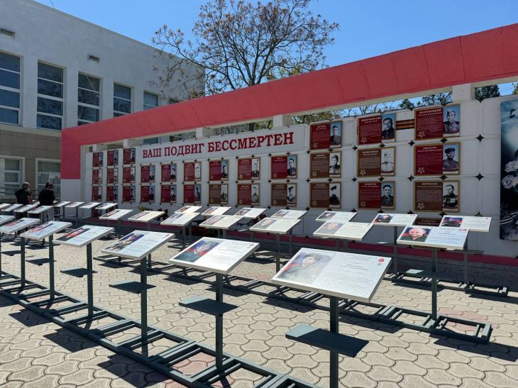На табличках фотографии героев, имена, годы жизни, основные факты биографии и награды за службу.