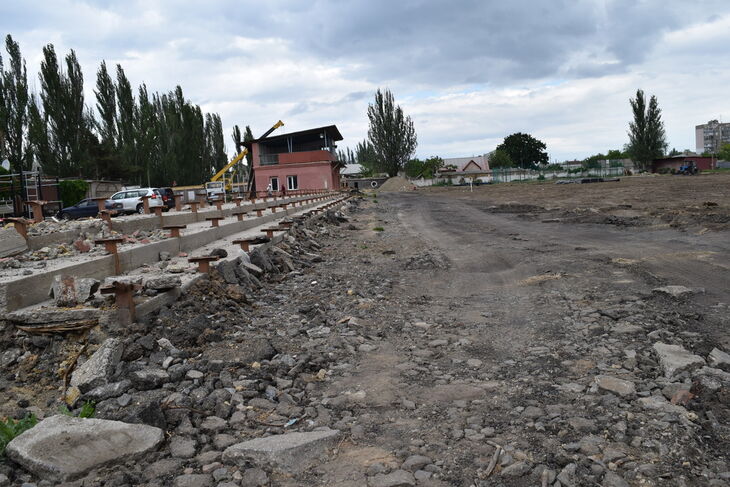 В настоящее время подрядчик демонтировал старую беговую дорожку, старые площадки уличных тренажеров, снял верхний слой грунта футбольного поля. Произведен комплекс демонтажных работ всех конструкций стадиона, стартовали работы по ремонту административного здания.