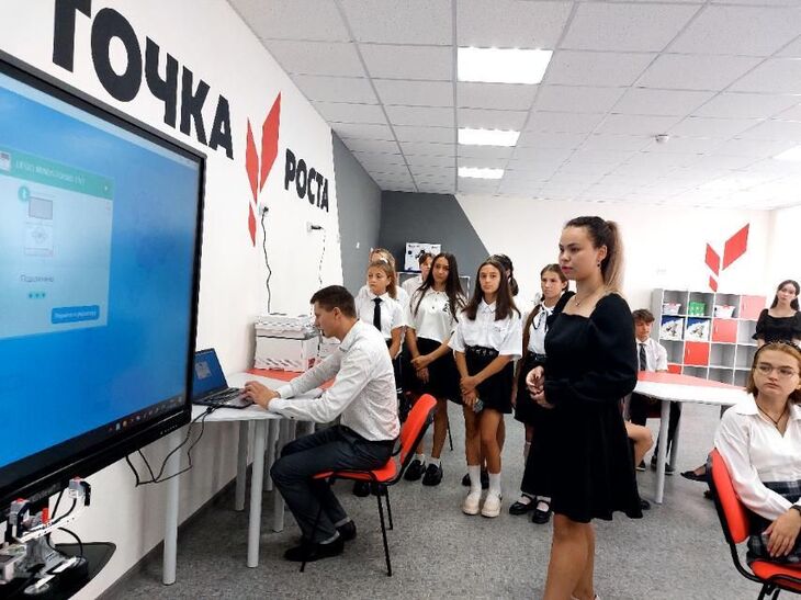Помещения для «Точек роста» оформлены в едином стиле в соответствии с типовым дизайн-проектом, оснащены стандартным и профильным комплектами современного оборудования, расходными материалами, средствами обучения и воспитания для достижения образовательных результатов по предметным областям «Физика», «Химия», «Биология».