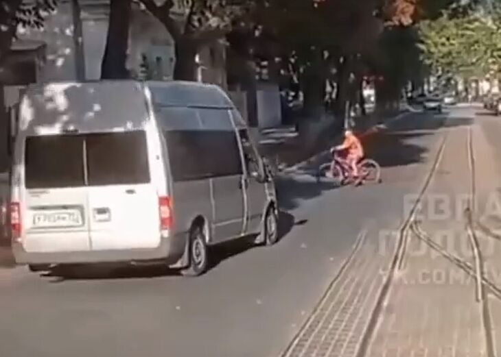 Житель Евпатории в соцсетях поделился видео, на котором видно, как мальчик, движущийся на велосипеде, едва не стал виновником ДТП. Ребёнок чудом разминулся с микроавтобусом, двигавшимся навстречу.